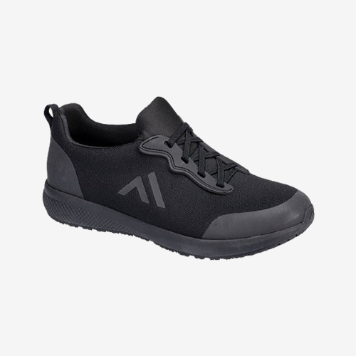 This lightweight occupational trainer is 100% metal free, and has an upper in stretchy textile aiding a more snug fit. It has a dual density phylon rubber outsole for superior grip and energy absorption.